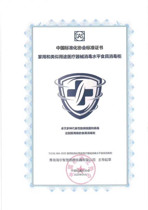 产品的持续升级必须由引领的标准来拉动。早在今年4月,由海尔主导行业首个“医用级食具消毒柜标准”经中国标准化协会审核通过。“医用级食具消毒柜”标准的出现,不仅填补了行业空白,还为用户带来更专业的健康杀菌方案。