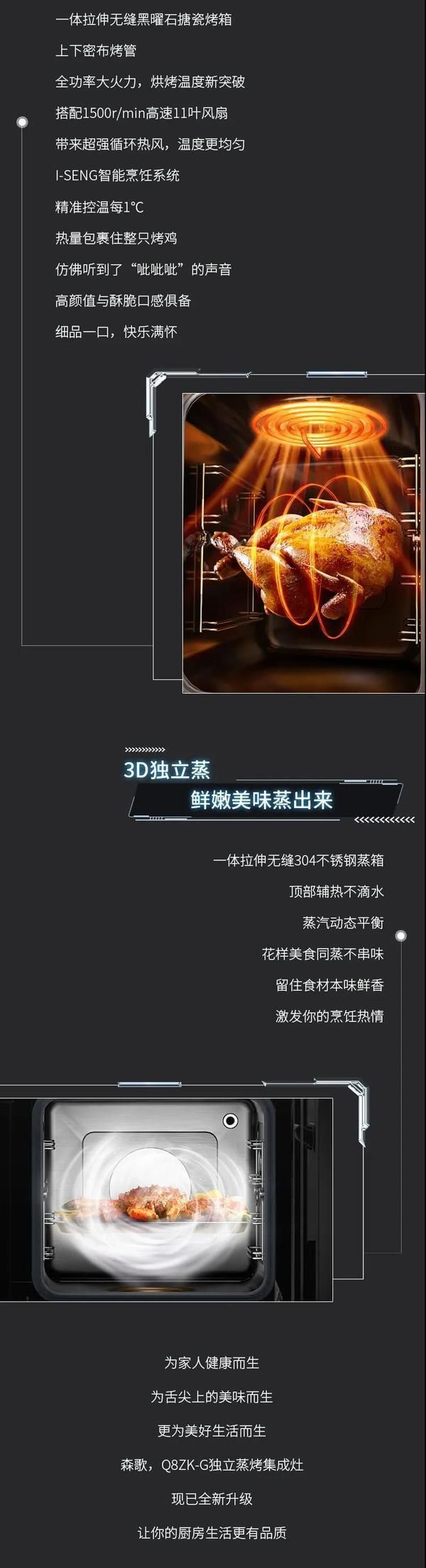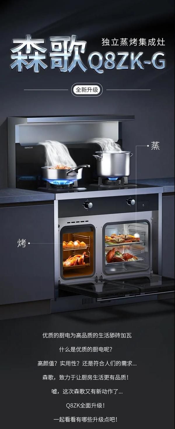 爆品全新升级上市,森歌Q8ZK-G独立蒸烤集成灶来了!双腔蒸烤齐开功、烹饪更高效~
