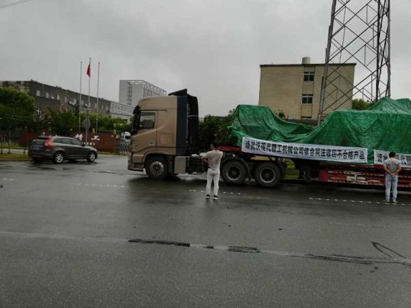 近日,一辆加长货车停在武汉现代精工机械股份有限公司门前3天3夜,被骗近3000万元的企业向武汉现代精工机械股份公司“讨说法”至今没有得到回应和解决。无奈之举,拉上横幅:“请武汉现代精工机械公司依合同法收回不合格产品”,但是该公司仍然拒之门外不理,还报警投诉客户干扰他们正常工作。