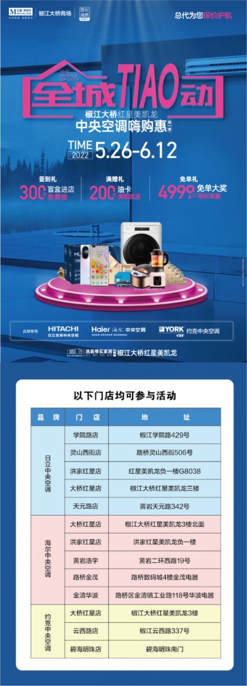全城Tiao动《一年一度卖空调大赛》正式启幕 买好空调就到椒江大桥红星美凯龙