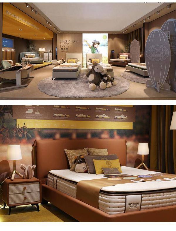 益卡思本次展台面积达315平米,以自然美学设计为原点,构建出儿童睡眠静谧空间,将品牌旗下两大系列EKSKIDS与ECCOKIDS的代表之作,为来自全球各地的行业参展人士面前焕然呈现。革新研发的护脊魔方新系列,将为您对儿童专业护脊睡眠带来更加具象的诠释。本次展会首发系列精彩纷呈,儿童床垫、床具、学习桌椅系列点亮馆内每一个空间,从产品款式到软装搭配都精心布置,让身处其中的观展客商流连忘返,赞不绝口。益卡思严苛精选材料和工艺,精益求精的制作工序,享誉全球的品质典范,致力为全球青少年儿童带来全场景式的专业健康护脊体验。