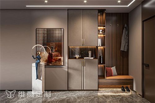 悬空换鞋凳+大块面留空,挂衣、换鞋两不误,让人一进门就能享受回家的舒适、轻松。