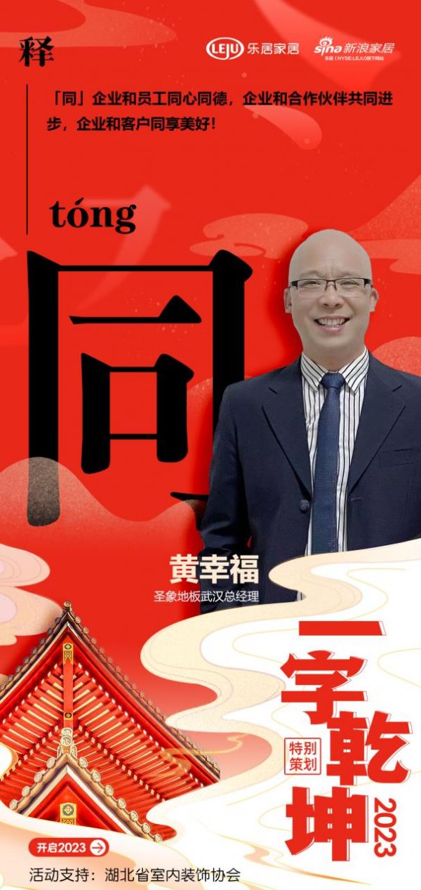 在新浪家居“2023一字乾坤”活动中,圣象地板武汉总经理黄幸福:「同」企业和员工同心同德,企业和合作伙伴共同进步,企业和客户同享美好!
