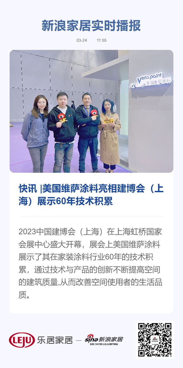 2023中国建博会(上海)在上海虹桥国家会展中心盛大开幕,展会上美国维萨涂料展示了其在家装涂料行业60年的技术积累,通过技术与产品的创新不断提高空间的建筑质量,从而改善空间使用者的生活品质。
