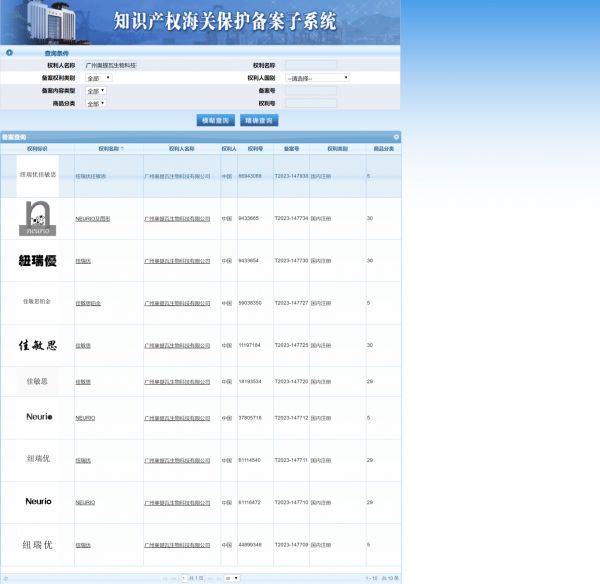 纽瑞优品牌方已在中国海关备案纽瑞优商标(详情可在知识产权海关保护备案子系统查询http://202.127.48.145:8888/zscq/search/jsp/vBrandSearchIndex.jsp#,请看以下详细截图),只有经过中国海关备案认可的进口商进口的纽瑞优产品才是正品,才能得到纽瑞优品牌方的质量保证和售后服务。