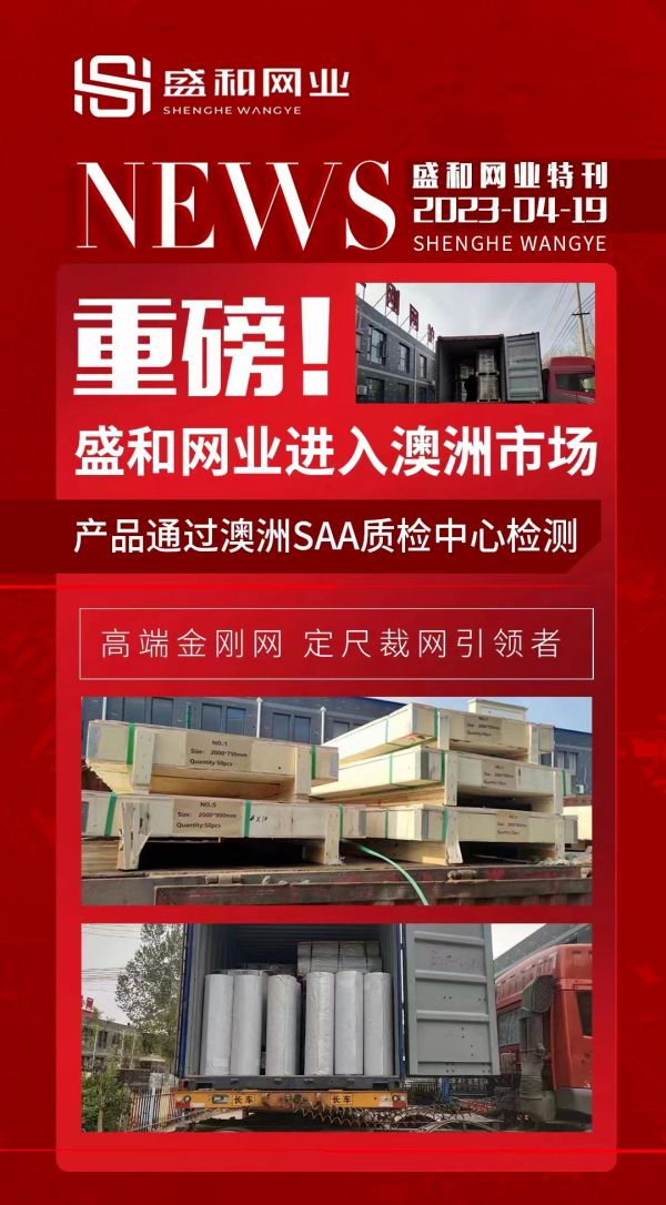 近日,盛和金刚网正式获得了澳洲SAA质检中心检测,进入澳洲市场,成为澳大利亚新规颁发后,为数不多能够进入澳洲市场的金刚网品牌!
