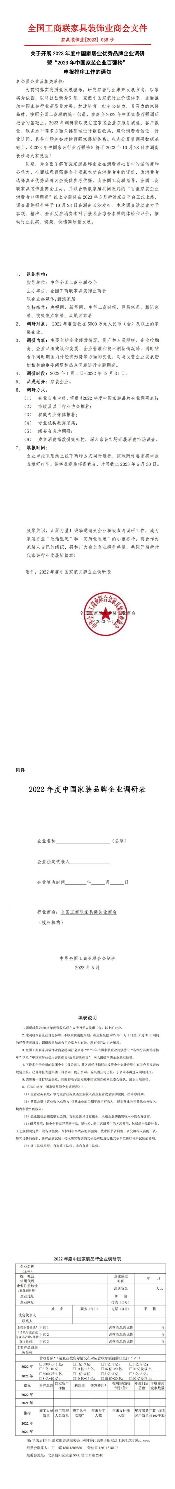 关于开展2023年度中国家居业优秀品牌企业调研暨“2023年中国家装企业百强榜”申报排序工...