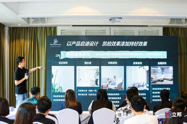 立邦中国/TUC事业群/闽赣销售公司/新业务推广部总经理林圣松先生在现场重磅介绍了立邦魔术漆系列新品。石材系列、植物系列、皮革系列以及金属系列,以不同的色彩和质感,助力设计师打造更多更好的家居设计效果。为了呈现更佳的墙面效果,立邦还全力打造全层涂装体系,赋予业主和设计师全新的生活美学体验,引领设计新风尚。