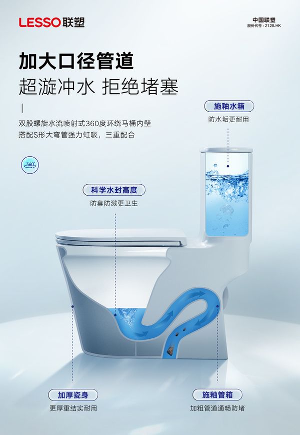 联塑超漩虹吸式连体坐便器,至净生活由此开启