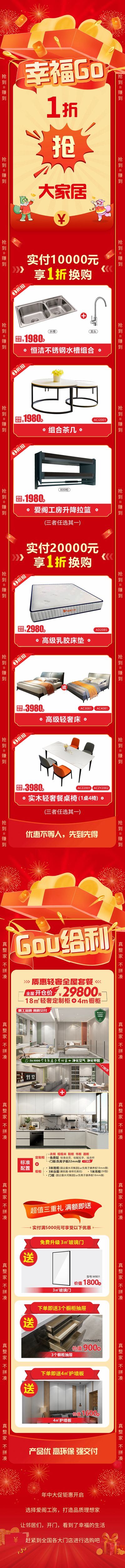 爱阁工房年中大促火爆开启,质惠轻奢全屋套餐18m²轻奢定制柜+4m橱柜只要29800元,真整家 不拼凑,满额即送三重礼,免费升级玻璃门,下单即送橱柜抽屉和护墙板,打造品质理想家,开启幸福生活无需等待。大家居1折抢,茶几、床垫、床、餐桌椅统统1折抢,一站配齐,拎包即可入住,优惠不等人,先到先得,赶紧到爱阁工房全国各大门店选购吧~