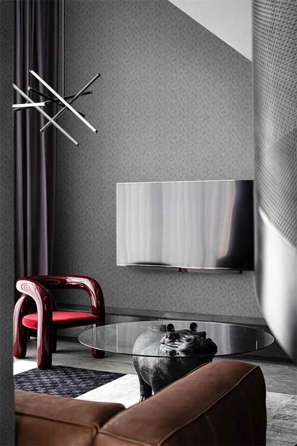 深沉的鼠色与银丝线构成的几何相互交织,即不失华丽,又显得沉着大气