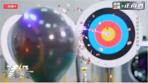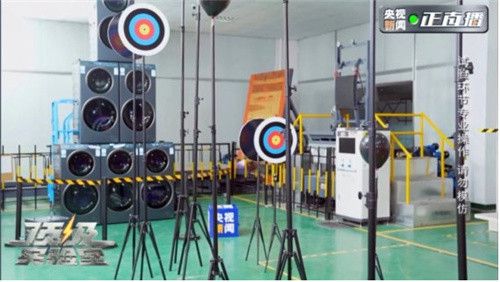 在另一间实验室,6台卡萨帝双子T5分区洗衣机叠放的3层“双子塔”格外显眼,近4米的高度,也为实验增加了高难度。实验中,主持人分别打开每层洗衣机上的激光笔,并对准前方标靶。一个、两个……随着主持人移开遮挡物,每道激光都准确穿过靶孔,将标靶后的气球一一打爆。