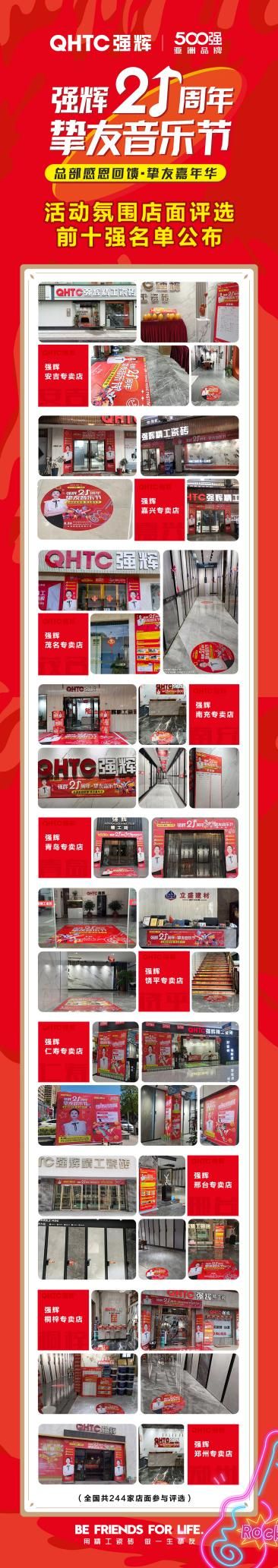 迎战装修旺季,助推品牌销售增长。强辉精工瓷砖值此品牌21周年之际,发起“强辉21周年挚友音乐节”全国联动活动,以优质的产品质量和钜惠的折扣,在全国各地掀起了一股“全民抢砖”热潮,引爆终端市场。