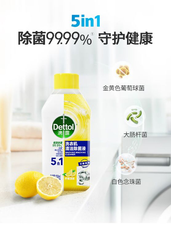 滴露洗衣机清洁除菌液还添加了柠檬香氛成分,清洗完毕后的洗衣机打开就能闻到柠檬清香,保证持久清新。如果想要洗衣机清洗的效果维持久一些,建议衣服洗完取出后不要立马把洗衣机盖盖上,让洗衣机内桶经常保持通风干燥,也可以减少一些细菌滋生。