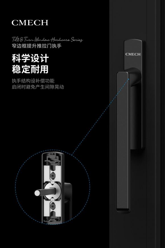 CMECH希美克内开内倒五金系统方案,优化内平开窗通风防盗性能