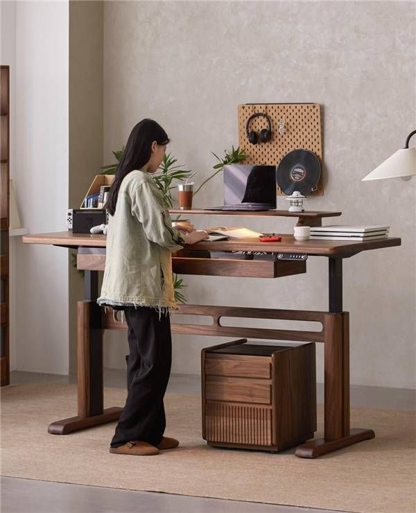 兼顾黑胡桃木原木美感与舒适体验,为普通书桌注入升降科技动力