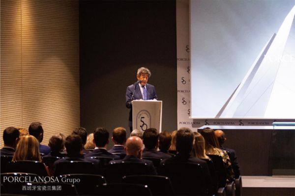 宝瓷兰集团总裁贺刻德·科隆克斯首先感谢国王出席此次活动,并提到费利佩六世国王早在2020年就向宝瓷兰颁发了国家创新奖,一直以来对于工业和创新给予极大的支持,并在发言中强调 “宝瓷兰是一家纯正的西班牙家族企业集团,致力于制造研发:墙、地面瓷砖,通风外墙系统,人造石以及厨房和浴室家具。”