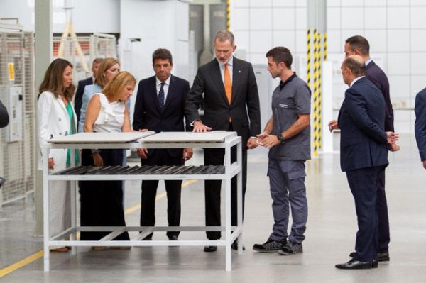 随后工厂工人的代表负责向费利佩六世解释生产过程的五个阶段:胚体的制备,瓷砖塑形(压制和干燥),装饰(搪瓷和数码设计),高温烧制,最后是后期加工(研磨,抛光,分类,包装和码垛)