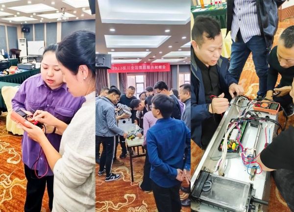 在公司产品技术人员的指导下,各个板川家人们相互探讨、钻研,对会上每一款产品和每一个技术要点进行实际操作,学习维修技巧,售服部的工作人员也在现场给家人们进行一对一的实战教学,确保本次赋能分享会能够收获满满。