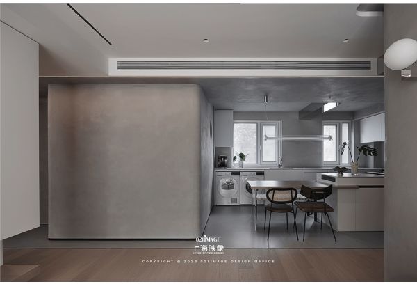 【鲁长青】:水泥是现代建筑元素符号,原木则是传统建筑元素符号。水泥的粗狂和原木的温润感结合、碰撞,迸发出奇妙的化学反应和情感反应,营造出一种简约而不失温馨舒适的效果。