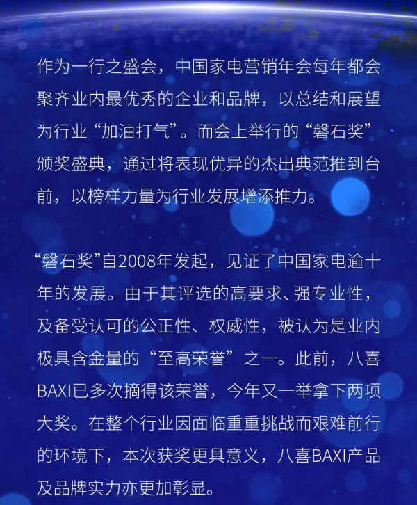 卓越品质,行业典范!八喜BAXI再获中国家电磐石奖!
