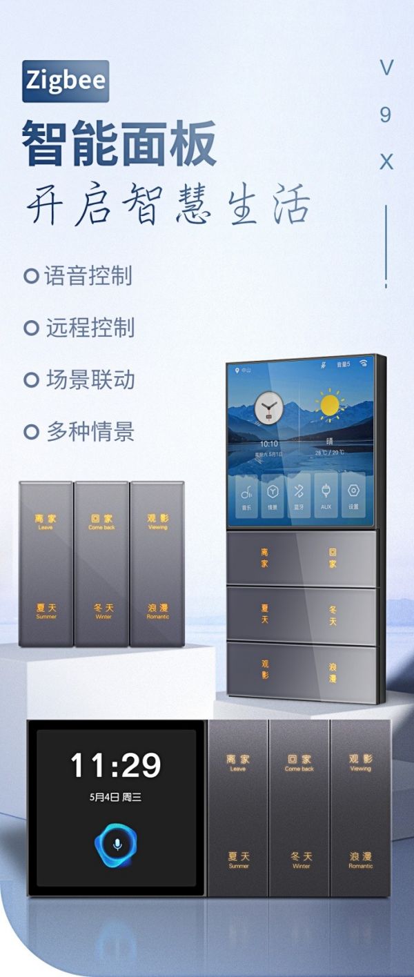 涂鸦生态量产的Linux语音中控网关屏,可连接涂鸦体系内所有ZigBee智能产品,实现设备控制、场景联动、语音助手等功能。比如控制灯的开与关,光源调光调色,启动扫地机器人、窗帘等。