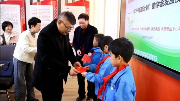 12月28日下午,永康市慈善总会联合群升集团有限公司(以下简称群升集团)开展的2023年“群升青苗计划”助学金发放仪式在西城街道山下小学举行。市慈善总会相关领导与工作人员、群升集团代表、山下小学师生代表参加本次活动。