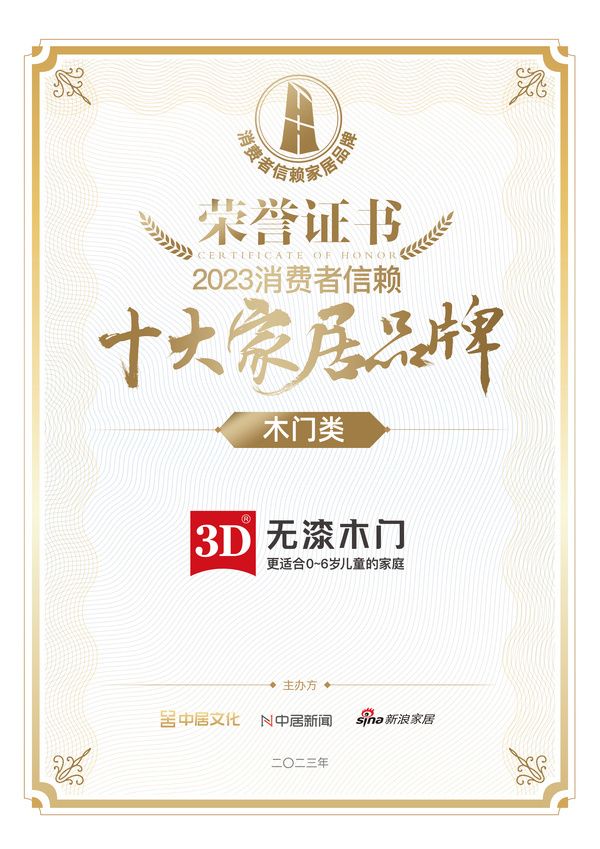 喜报!3D家居荣获木门类「2023消费者信赖十大家居品牌」