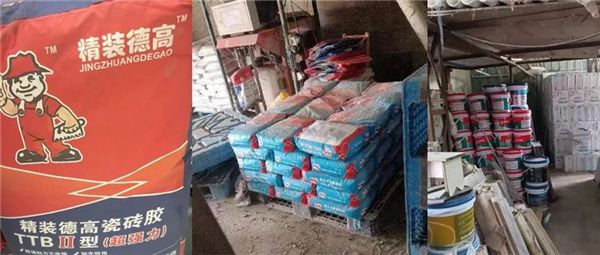 佛山顺德查处1个售假门店查扣假冒瓷砖胶317包。