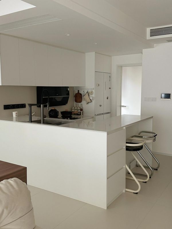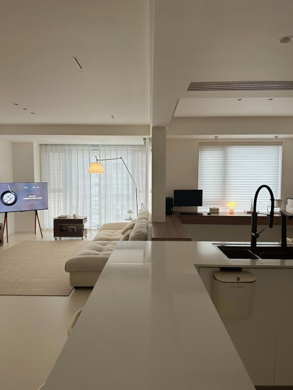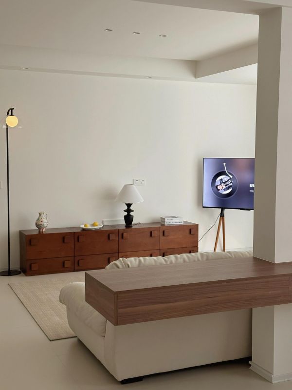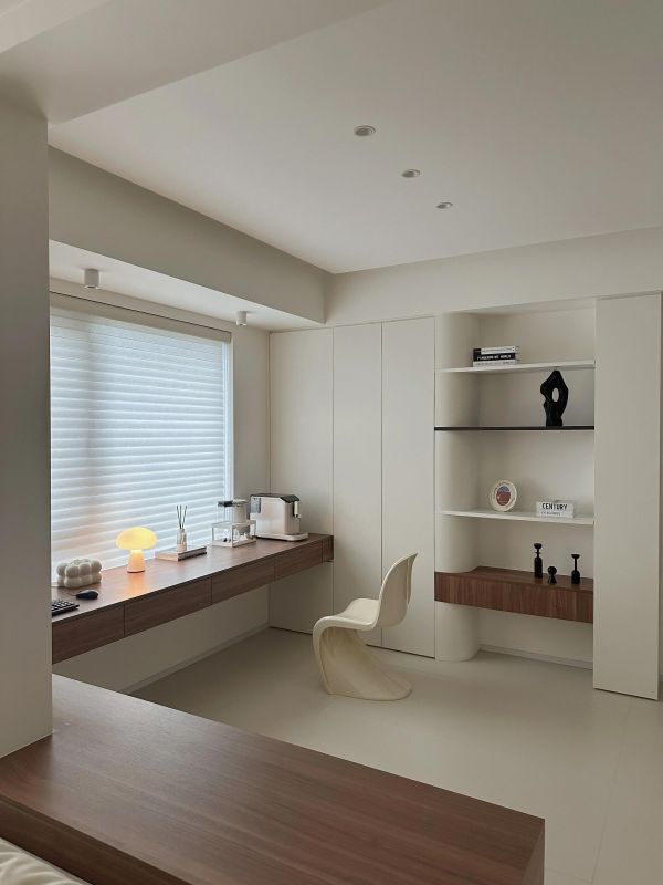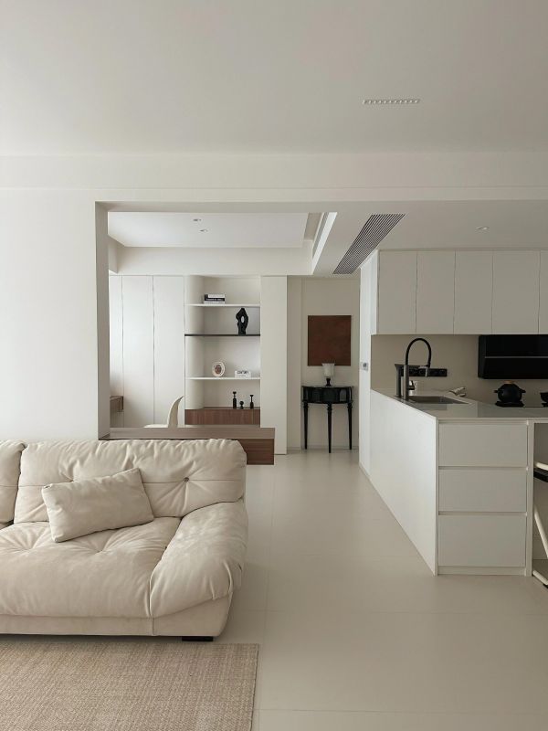 全屋色系采用白色点缀原木,用定制衣柜作为装饰,软装辅助,让整个家很简洁,很精致,灯光的搭配作为灵魂,让整个空间融为一体。