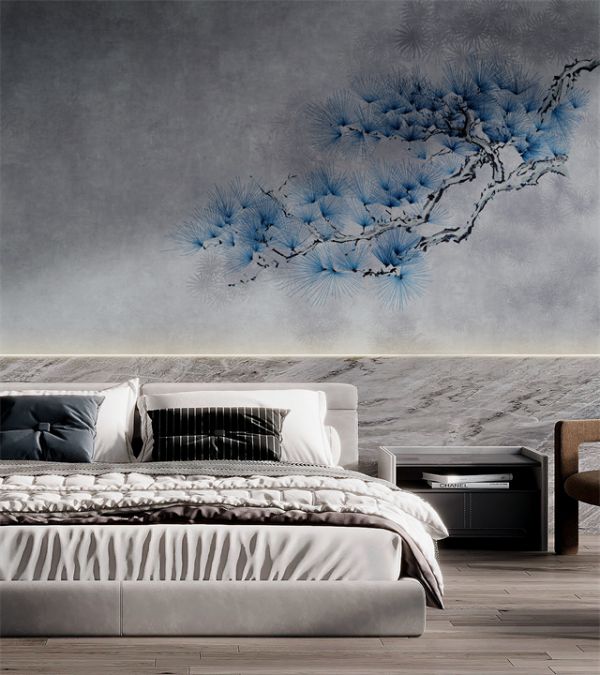 设计将树皮纹与雾灰蓝色彩巧妙融合