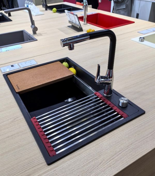 2023,定位于“奢雅”的高端类陶(Simiceramic)品牌花岗岩水槽亮相中国厨卫展。