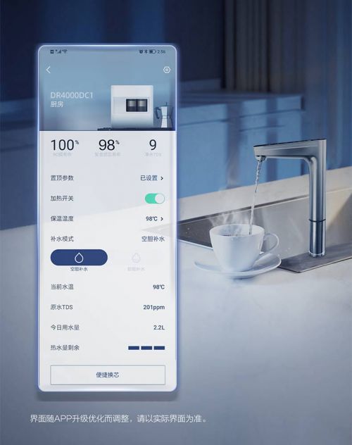 同时,您还可以在移动智能端AI家智控app上进行一键加热、保温设定,更可实时监测水质状态,精准显示原水及净水TDS值,水质一目了然,饮水安全心中有“数”,饮水更安心。