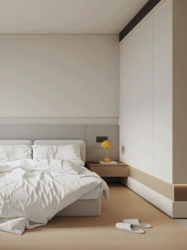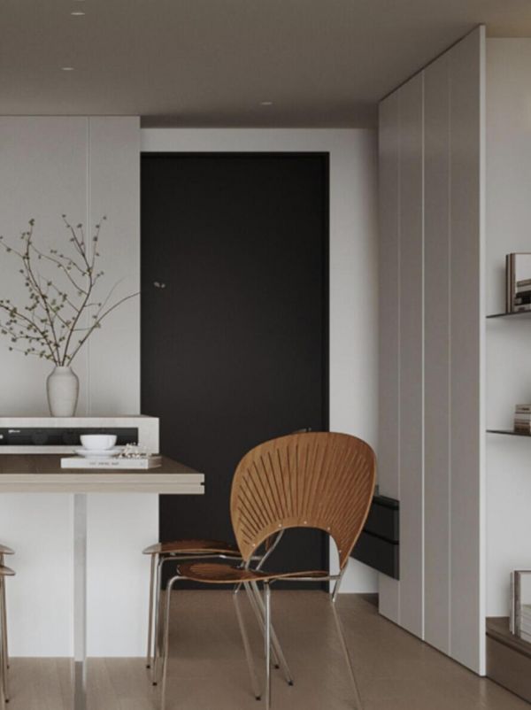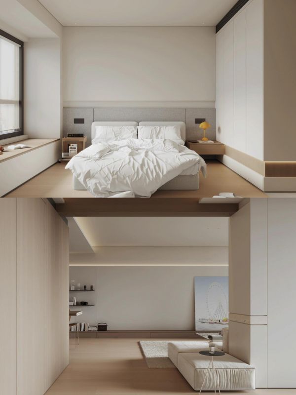 打通的那个卧室做了两扇折叠门与公共空间隔开,也做了翻折床,过年偶尔人多的时候又可以保持三个独立的房间。