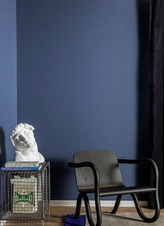 作为芬琳Color Now 2025的主色,夜曲蓝N348悠远而深邃,艺术雕像和乌木座椅摆放其中,简洁的氛围令人逐渐沉浸与爱人静享这片刻的静谧时光,远胜一切甜言蜜语。
