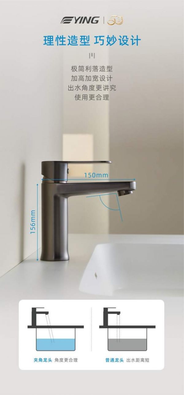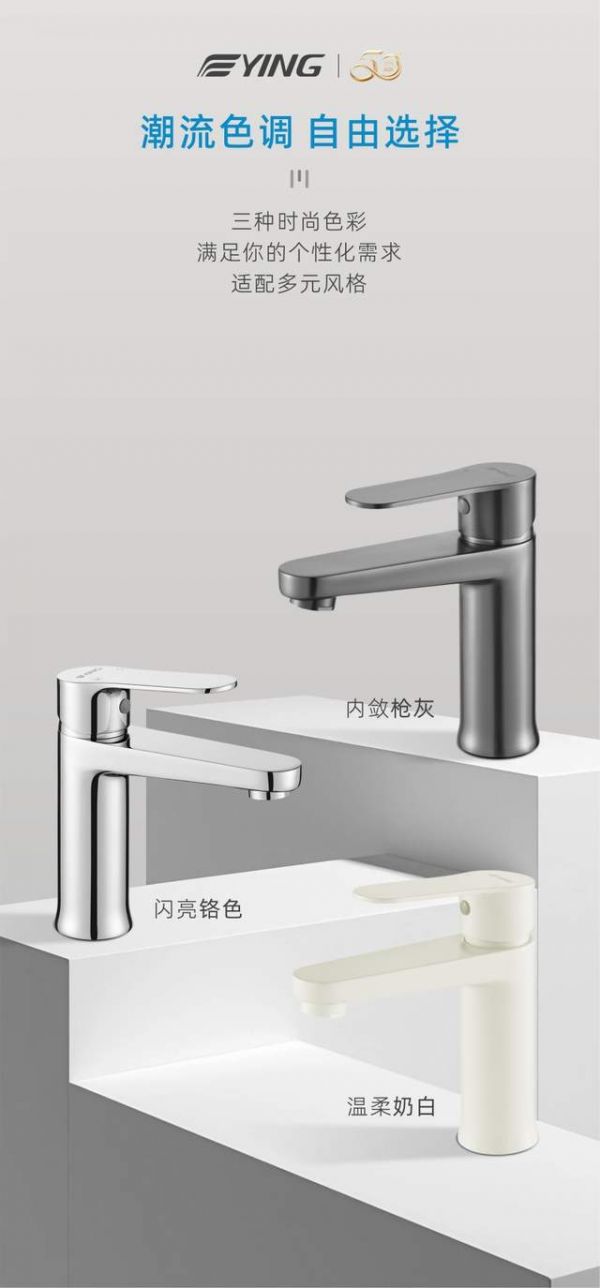 十大卫浴品牌——鹰卫浴晶悦系列面盆龙头加高加长设计,出水更讲究;源头净铅,精妙出水,畅享健康;时尚潮流配色,尽享高颜值搭配,于方寸空间 畅享水流之舞!