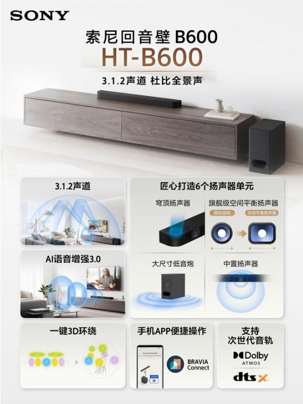 索尼新款家庭影院产品现已开启预售,HT-B600建议零售价为3,490元,HT-S60建议零售价为4,990元,HT-B600和HT-S60将于5月9日正式发售。无线低音炮SW7和后环绕音响RS8将在夏季上市。消费者可通过索尼官方网站、授权零售渠道及各大电商平台预订,详细产品信息及价格请关注索尼中国官方发布。