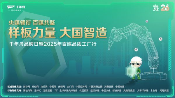 当数字浪潮重构产业格局,建材家居行业正经历着从"制造"到"智造"的深刻变革。值此变革之际,样板力量·大国智造 —— 千年舟品牌日暨2025年百媒品质工厂行即将启幕,众多权威媒体将齐聚千年舟,以一场深度探厂之旅,探寻千年舟在时代变革中成功转型升级的独家密码,共同揭开中国智造升级这一宏大篇章的崭新序幕。