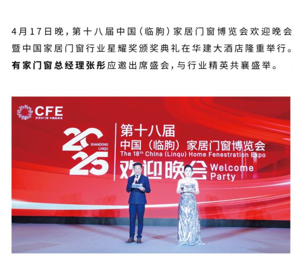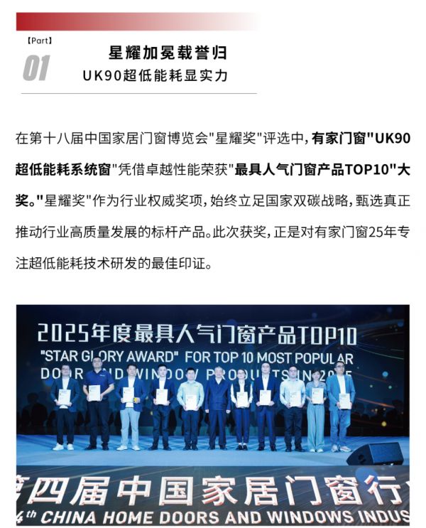 星耀奖加冕|有家门窗斩获'最具人气门窗产品'TOP10殊荣'
