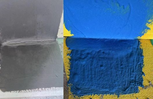 左:使用普通防水涂料阴阳角开裂 右:使用抗裂Pro防水涂料厚涂不开裂