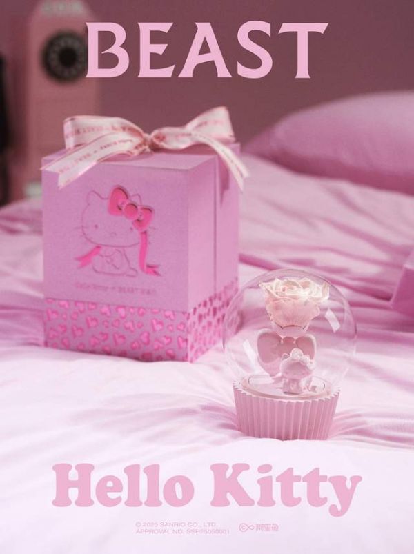 本次Hello Kitty×野兽派520合作系列包含造型永生花、创意鲜花、香氛等多款人气与心动单品,可爱诠释主题——每一个重要时刻,谢谢你陪伴我。其中“乖乖坐”蝴蝶结永生花从2025情人节系列第一次亮相就受到大家的深深喜爱。此次Hello Kitty换上520限定千禧粉色装扮再次可爱登场,每一个Hello Kitty永生花均采用天然永生花瓣制作,每一瓣永生花瓣都是纯手工粘贴,用时间打磨,经过反复修剪对照还原呈现经典的Hello Kitty造型。定制慕斯粉色底座与亚克力防尘罩铺满爱心豹纹图案,每一处设计细节精致用心,让Hello Kitty可以更长久地陪伴在身边。