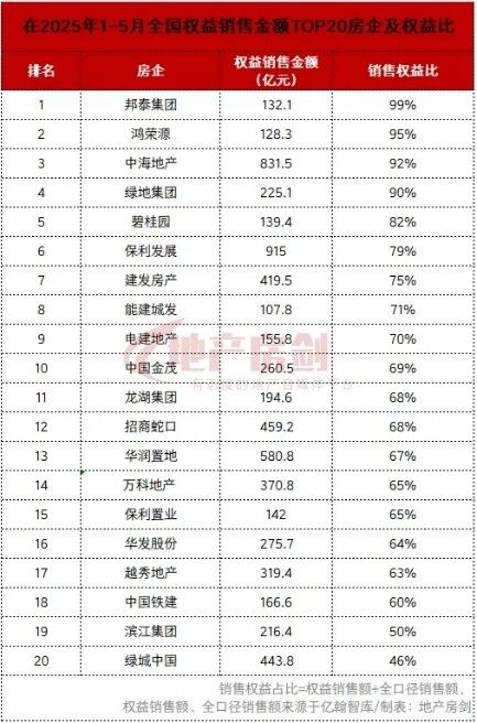 同期,邦泰集团高达99%的权益销售比,在2025年1 - 5月全国权益销售金额TOP20房企权益销售比排名中稳居榜首,印证了其极强的独立操盘能力,凸显出资金链的稳健性与安全性。亮眼的销售业绩叠加稳健的资金结构,让邦泰成功构建起良性循环,不仅打破了民营房企普遍面临的发展困局,更迎来了邦泰发展的高光时刻!