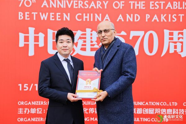 在专业领域之外,周令先生始终以设计为媒介,构建社会责任体系:国际文化交流层面,2021年亚洲最佳设计师周令受邀出席中巴建交70周年设计艺术展,作为设计师代表发言。并获巴基斯坦驻华大使莫因·哈克亲授荣誉证书。