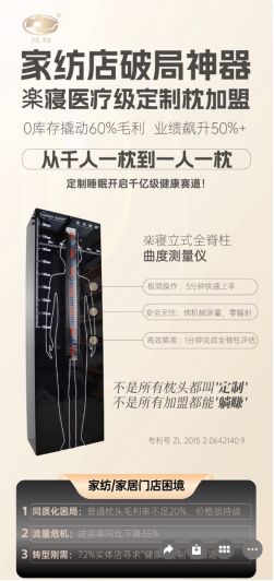 面对这一健康危机,楽寝公司推出的智能定制枕解决方案引发行业关注。该产品独家专利技术:全自动颈椎曲度测量仪可在1分钟内完成精准检测,根据颈椎曲度来定制适配每个消费者的枕头。食品级软管填充物通过10万次耐久测试,兼具支撑性与舒适度,且具有防潮防螨作用,可直接机洗。