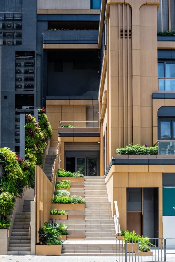 瑜悦独特的立面设计打破大众对模组化建筑单调外观的刻板印象。退台式的大楼设计拓宽了街道,错落有致的绿植点缀着景观阶梯,为行人预留更多公共活动区域,为高密度城市生活注入自然气息与人文温度。