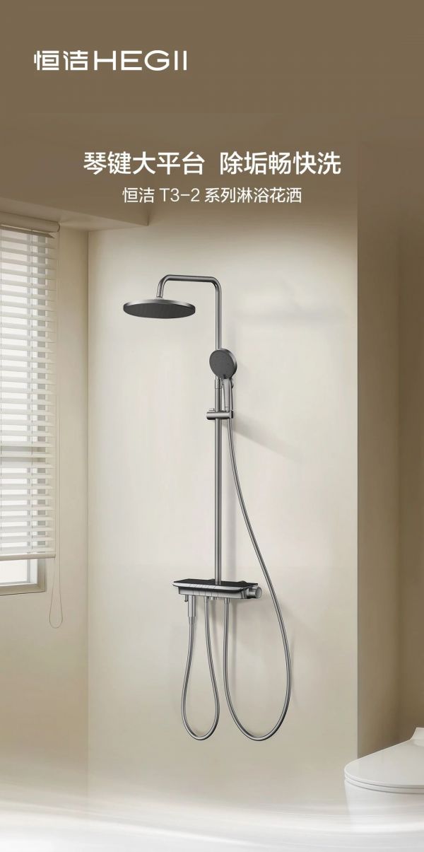 新品上市|恒洁 T3-2系列淋浴花洒,琴键大平台,除垢畅快洗