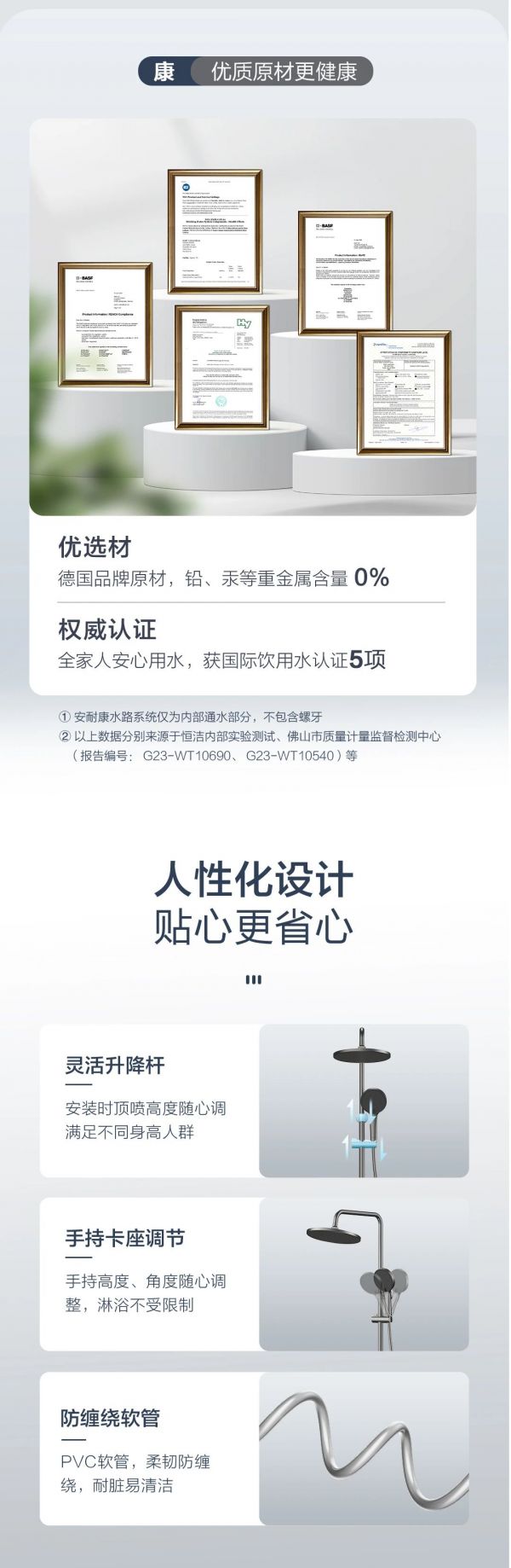 恒洁T8P水净阻垢花洒,舒适淋浴全方位体验
