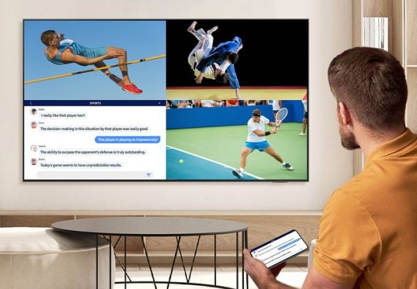 对于体育爱好者而言,同时追踪多场赛事动态又不耽误与朋友实时讨论是常见需求,三星AI电视新 Tizen 智能系统支持的多视窗模式恰好能够满足。多种热门赛事可同时在三星AI电视屏幕上呈现,不错过任何一场赛事的夺冠瞬间;用户还可将移动设备投屏到AI电视上,实时与朋友互动、查看赛事数据等内容,为深度体育迷提供全面的信息支持。