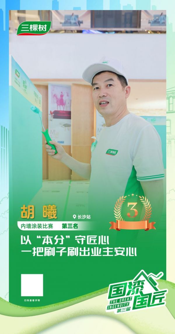 三棵树2025“国漆国匠”大赛长沙站内墙涂装铜牌匠人胡曦:以“本分”守匠心 一把刷子刷出业主安心