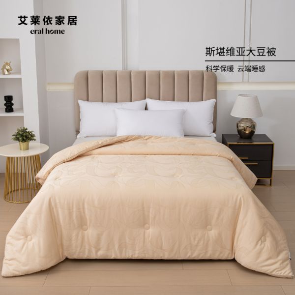 当天丝棉大提花,邂逅天然大豆纤维,一床会“呼吸”的被子,从此定义你的舒适睡眠。艾莱依斯堪维亚大豆被,选用高支天丝棉大提花,触感如丝般柔滑,光泽细腻,亲肤透气裸睡也安心。搭配优质大豆纤维,轻盈蓬松不止于暖,更能吸湿排汗,四季干爽无忧,更兼具天然抗菌属性,呵护肌肤整夜洁净。在此基础之上,采用整张定型与精密绗缝工艺,确保被芯长久均匀不变形,四周立高包边,挺括有型,细节处处显品质。艾莱依斯堪维亚大豆被,自然呼吸,裸睡级柔滑体验,伴你每一夜清新入梦,晨起能量饱满。